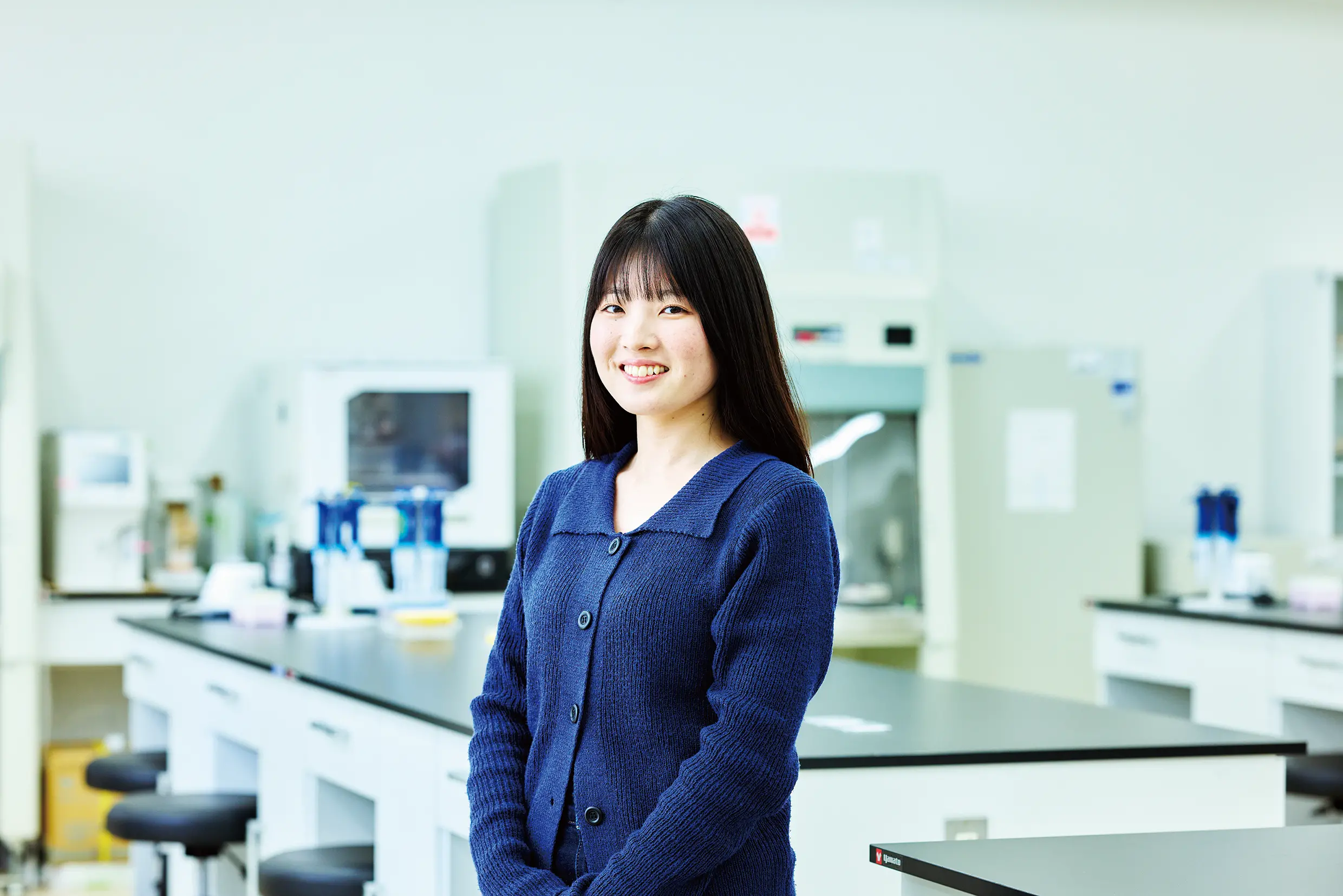 就職活動をしていく中で自己分析を行ったところ、自分には研究開発の仕事に適性があると考えました。その結果、健康補助食品の製造にかかわっている企業に興味を持ち、その中でも高い技術力と製品開発に特化したアピ株式会社に惹かれました。就職活動中は教職員の方々から親身になって指導していただいたおかげで、次第に自信を持つようになりました。内定を得た際には、一緒になって喜んでくれたことが今でも強く印象に残っています。今後は、大学で培った知識を活かし、健康食品の研究・開発を通じて多くの人に笑顔を届けていきたいです。