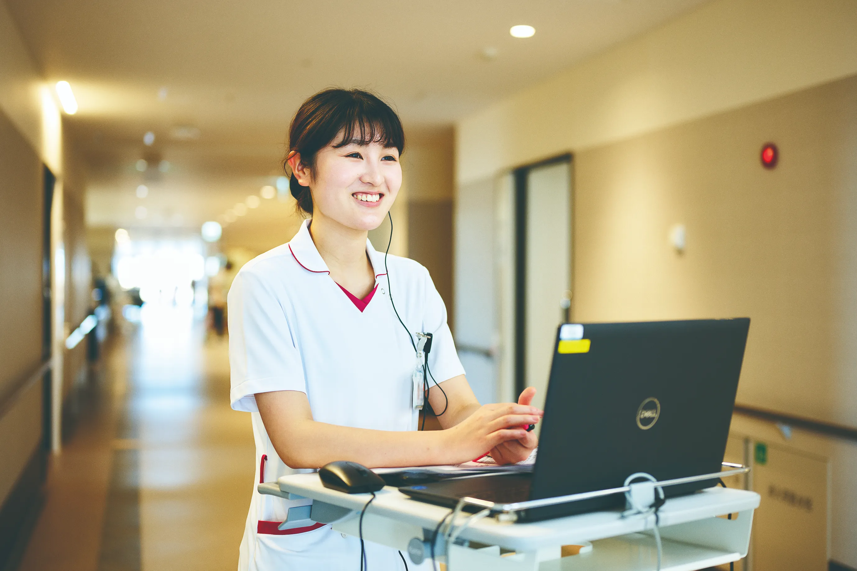 脳血管疾患や骨折の手術を終えた患者さんの社会復帰を支援する回復期リハビリテーション病棟で働いています。移動する、食べる、着替える、入浴するなど、入院生活すべてがリハビリテーションです。相手の思いを尊重しながら、スタッフ一丸となってサポートしています。最初は寝たままシャワーで身体を洗っていた患者さんが、自分で立ち上がり浴槽に入れるようになった時、「病院に来て初めて湯船に浸かれたことがうれしくて」と涙を流し、「すごく気持ちよかった」と話してくれました。リハビリテーションや日々のケアを通し、回復していく姿を目の当たりにできることがやりがいです。患者さんの気持ちや最善の対応を常に考えて行動できるよう、これからも技術と人間性を磨いていきます。