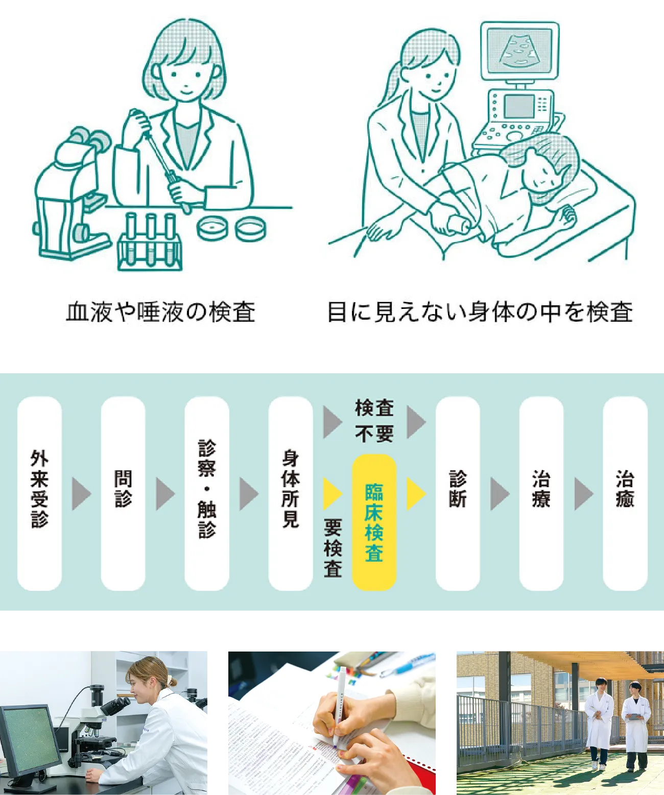 血液検査や心電図検査など、病気の原因を調べる検査のスペシャリストのことです。