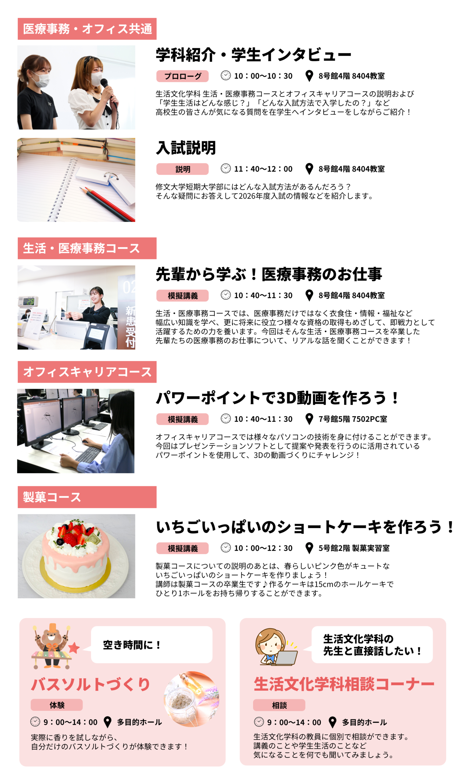 3月20日オープンキャンパスプログラム(生活文化学科)