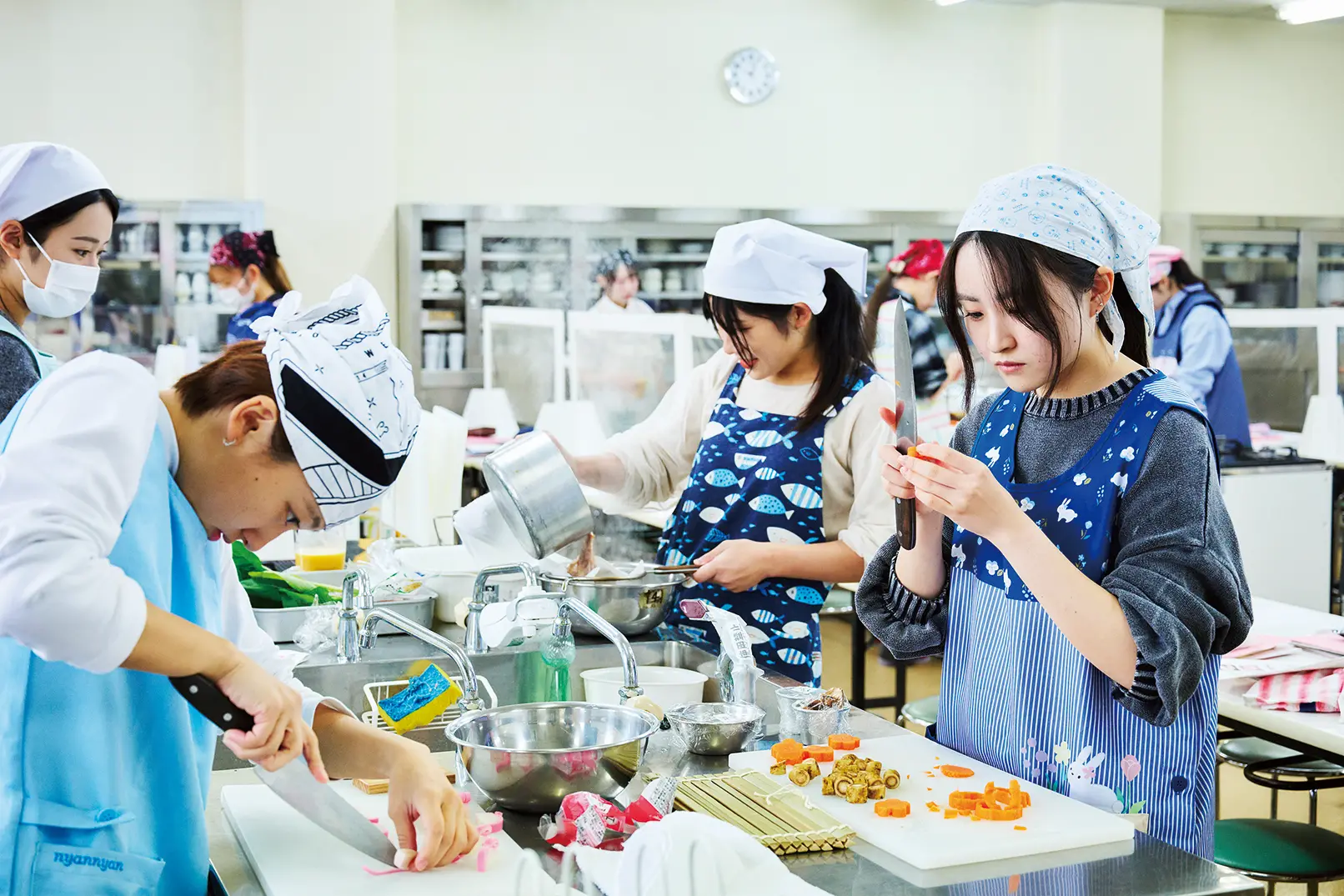 「子どもの食と栄養」の授業では、離乳食や調乳する時に注意点などを学びました。調理実習を通じて、こどもの成長に必要なエネルギーや栄養を学ぶほか、食材の選び方や調理法、味付けの工夫について理解を深めました。食の大切さをこどもにうまく伝えられる保育者になりたいです。